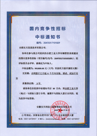 长天信息顺利中标合肥工业大学车辆管控系统建设