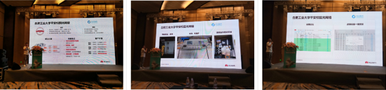 公司技术总监董杏林,作为本次会议的特邀嘉宾,分享了公司承接的合肥工业大学安防二期建设项目中华为全光校园解决方案的经验:“在校园安防建设中,安装的监控点位多为长距离室外点位,考虑到监控及其它安防系统的特点,传统的以网线为主要传输介质的网络不能很好的满足安防系统的建设要求,特别是终端设备的部署,而华为GPON全光网络天然的契合了学校的诉求。本次项目建设中,在合肥工业大学的屯溪路和翡翠湖两个校区各部署一台OLT设备,每栋楼放置一个分光器将信号分到室内每个楼层或室外立杆,室外每个立杆放置一台ONU设备,新增点位和设施全部接入GPON全光网,GPON全光网与原网络核心设备进行无缝对接,实现扁平化管理,缩短时延,精准故障定位,降低维护难度,同时也极大的节省了工程布线和施工成本。