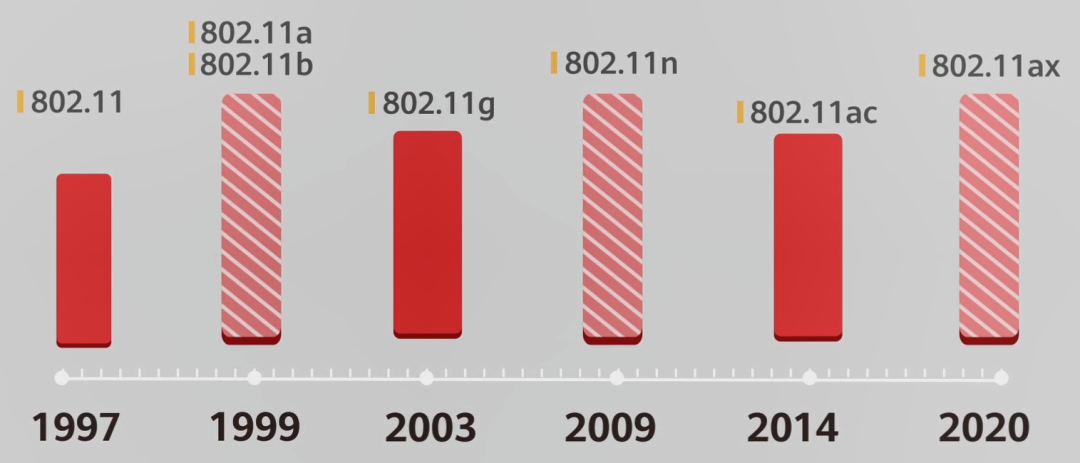 2018年,为了方便记忆和理解,Wi-Fi联盟终于决定抛弃之前802.11n、802.11ac等专业标准名称,仿照移动通信中代际3G、4G、5G的划分,将现有标准简化为数字命名。